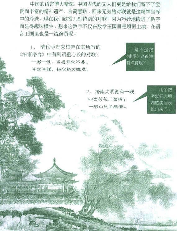 中国的语言博大精深,中国古代的文人们更是给我们留下了宝贵而丰富的精神遗产,言简意赅、回味无穷的对联就是这精神宝库中的珍珠。
