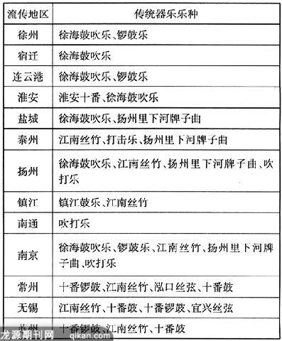 总之,传统音乐各类体裁在音乐风格方面所表现出的这种区域内趋同和区域间差异现象,以及近区域(邻近地区)风格趋同性增强和远区域(远程地区)风格差异性增强等现象,都是音乐区域文化特征的表现。本文只是按不同传统音乐体裁统计和梳理了江苏省各个不同地区的分布情况,对省内音乐区域文化的差异性布局及其形成差异的原因,将有另文论述,此不赘述。